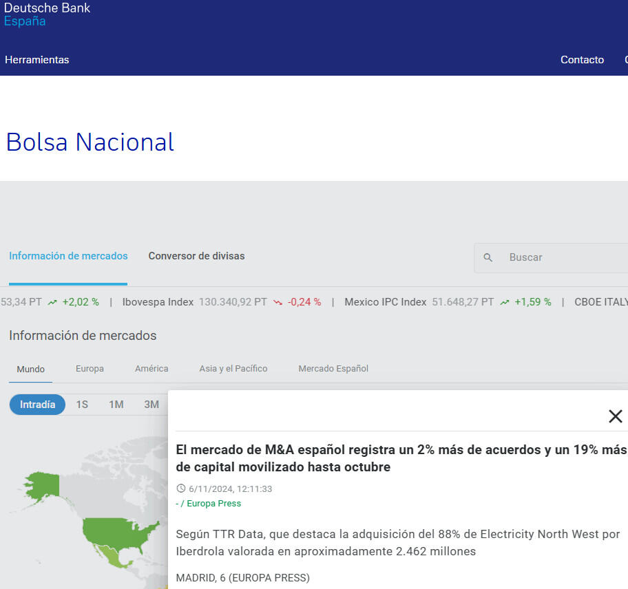 El mercado de M&A español registra un 2% más de acuerdos y un 19% más de capital movilizado hasta octubre