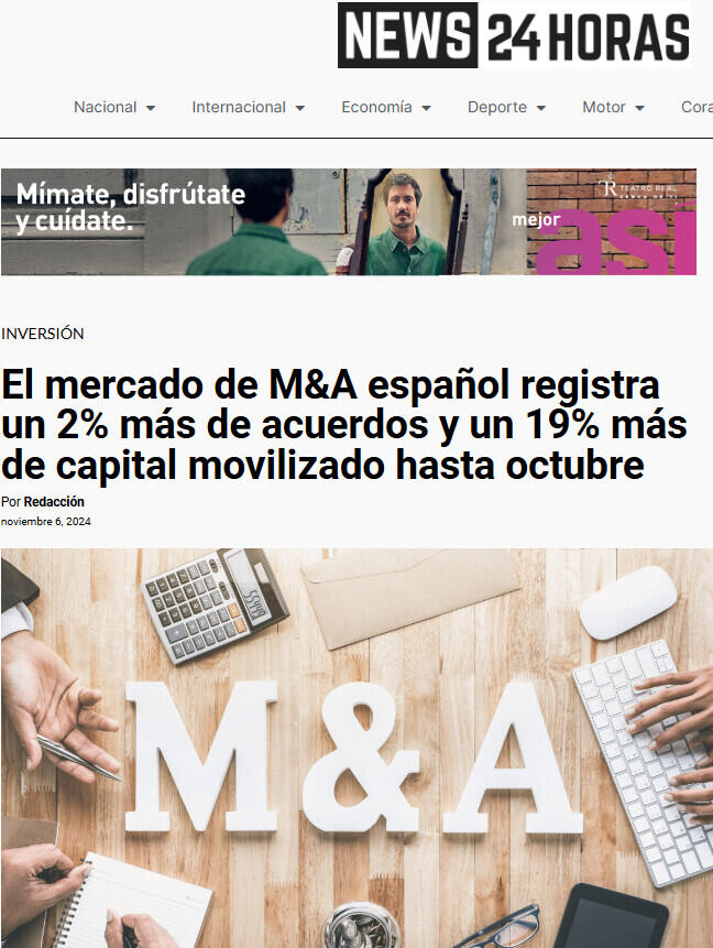 El mercado de M&A español registra un 2% más de acuerdos y un 19% más de capital movilizado hasta octubre