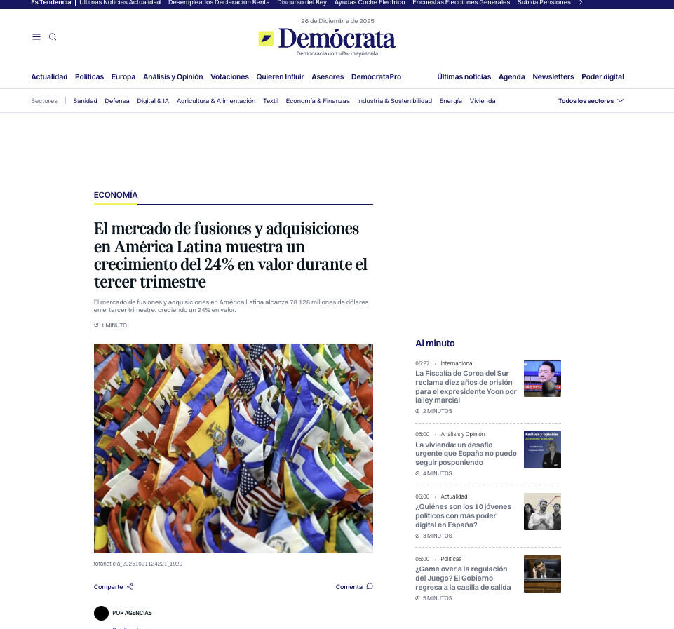 El mercado de fusiones y adquisiciones en América Latina alcanza 78.128 millones de dólares en el tercer trimestre, creciendo un 24% en valor.