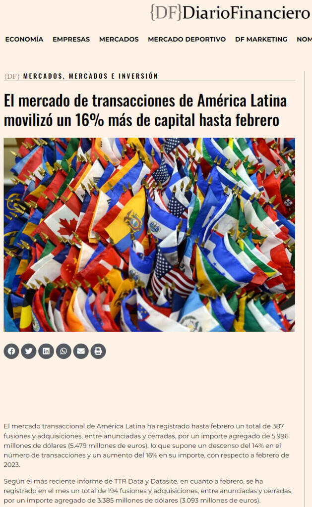 El mercado de transacciones de América Latina movilizó un 16% más de capital hasta febrero