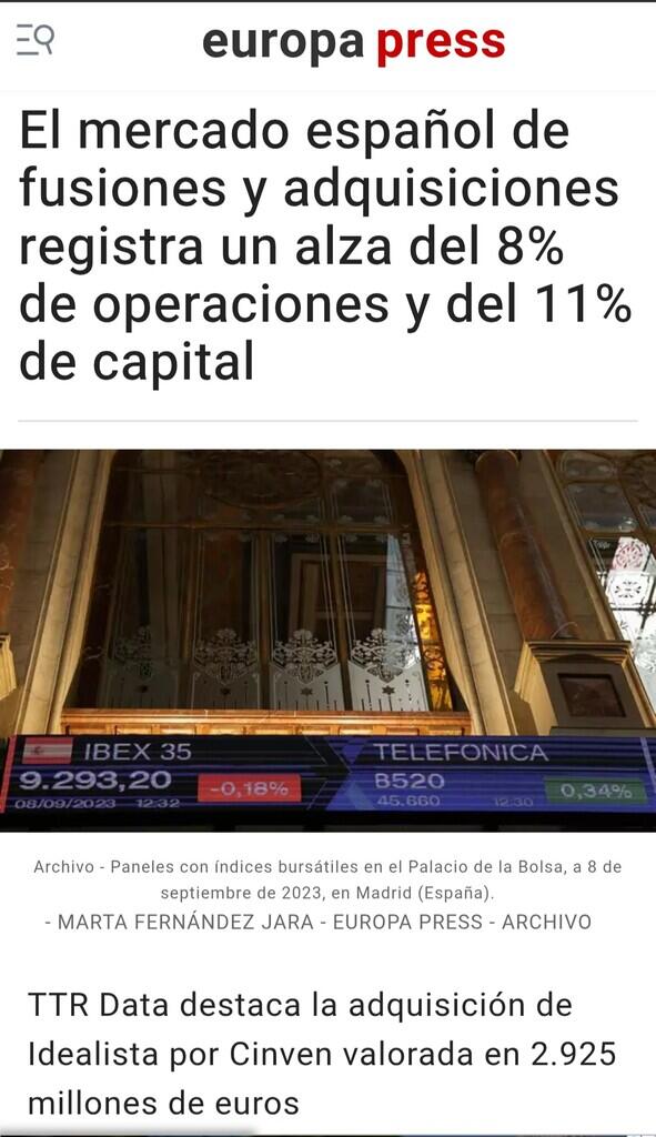 El mercado español de fusiones y adquisiciones (M&A) registró en 2024 un total de 3.473 operaciones, entre anunciadas y cerradas, lo que supone un 8% más frente a 2023, mientras que el capital movilizado ascendió a 95.791 millones de euros, un 11% más, según el informe anual de TTR Data en colaboración con A&O Shearman España.