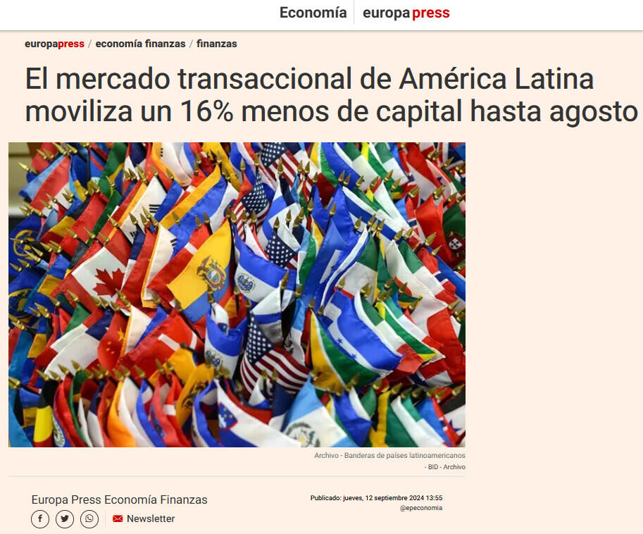 El mercado transaccional de América Latina moviliza un 16% menos de capital hasta agosto