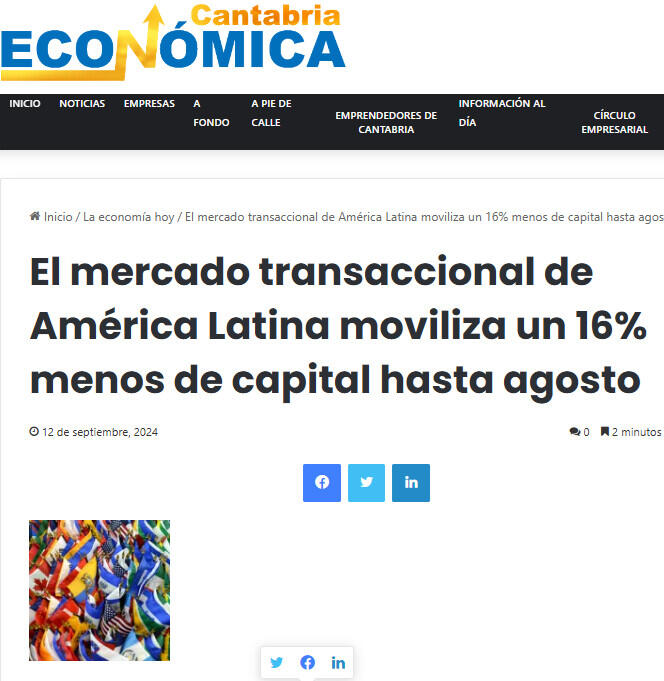 El mercado transaccional de América Latina moviliza un 16% menos de capital hasta agosto