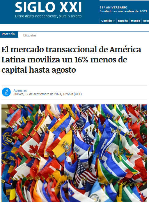 El mercado transaccional de América Latina moviliza un 16% menos de capital hasta agosto