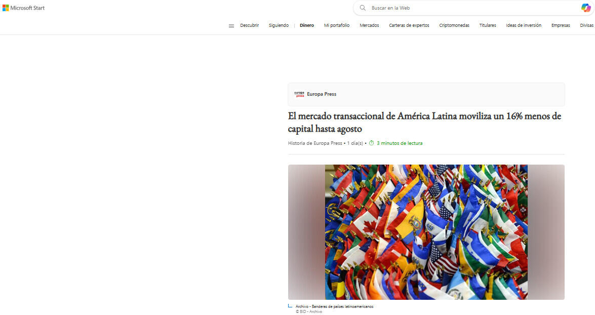El mercado transaccional de América Latina moviliza un 16% menos de capital hasta agosto