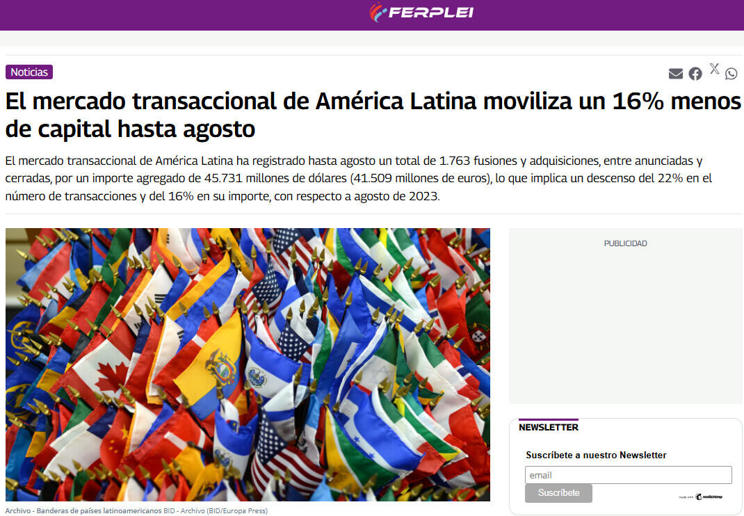 El mercado transaccional de América Latina moviliza un 16% menos de capital hasta agosto