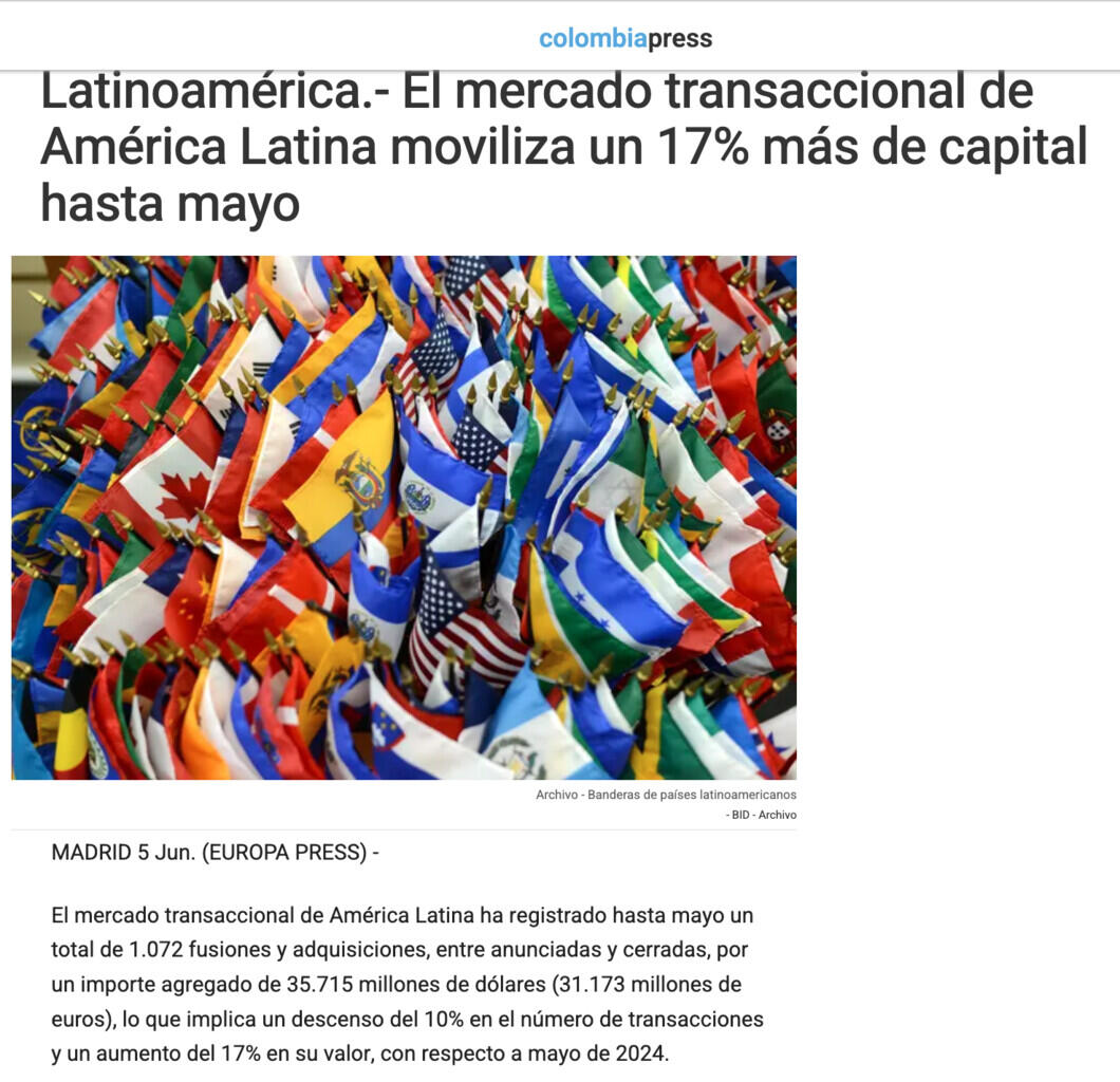 El mercado transaccional de América Latina moviliza un 17% más de capital hasta mayo