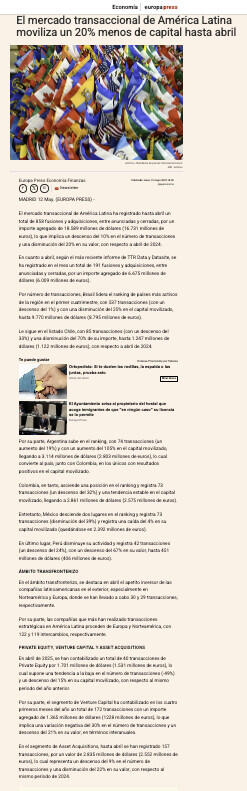 El mercado transaccional de América Latina moviliza un 20% menos de capital hasta abril