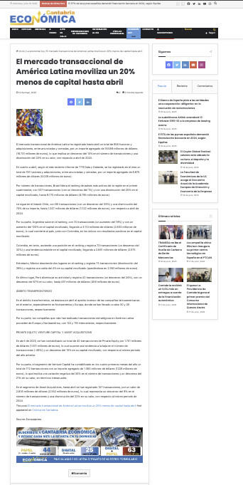 El mercado transaccional de América Latina moviliza un 20% menos de capital hasta abril