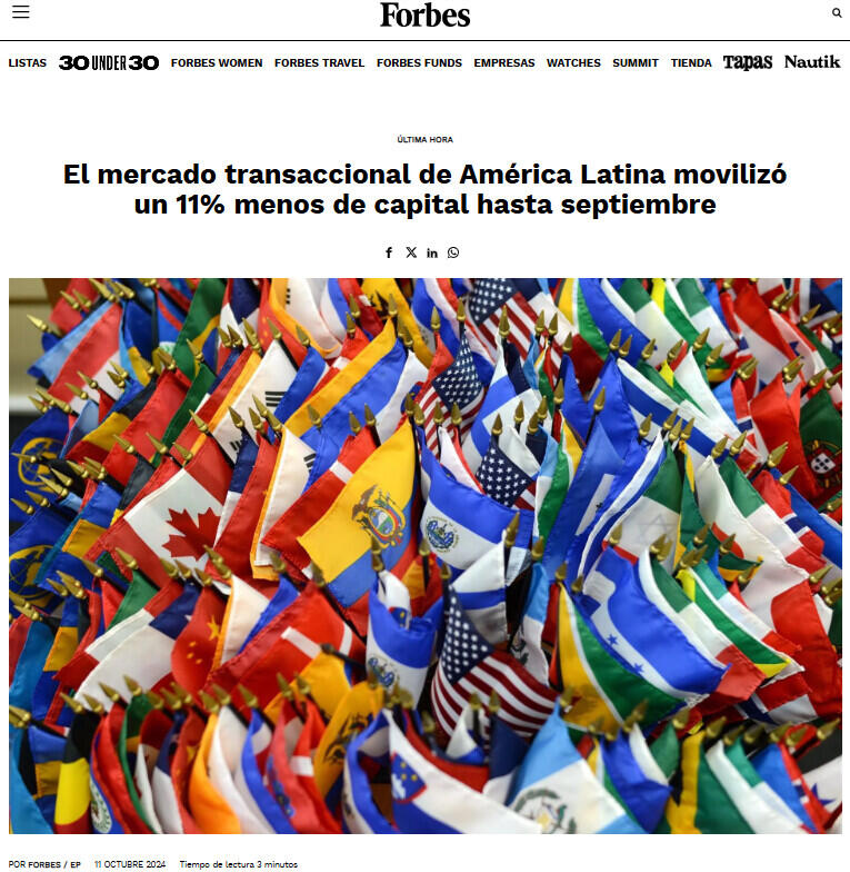 El mercado transaccional de América Latina movilizó un 11% menos de capital hasta septiembre