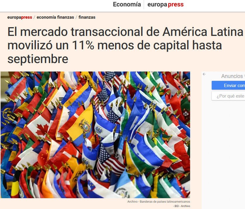 El mercado transaccional de América Latina movilizó un 11% menos de capital hasta septiembre