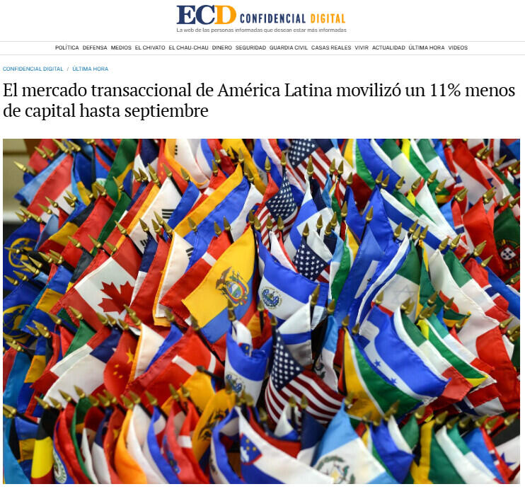 El mercado transaccional de América Latina movilizó un 11% menos de capital hasta septiembre