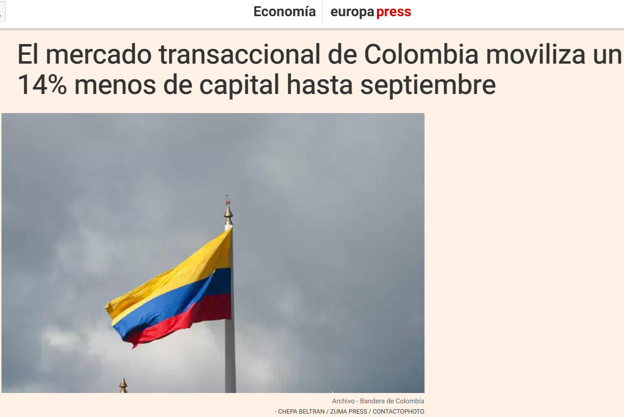 El mercado transaccional de Colombia moviliza un 14% menos de capital hasta septiembre