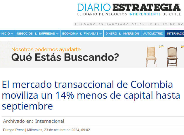 El mercado transaccional de Colombia moviliza un 14% menos de capital hasta septiembre