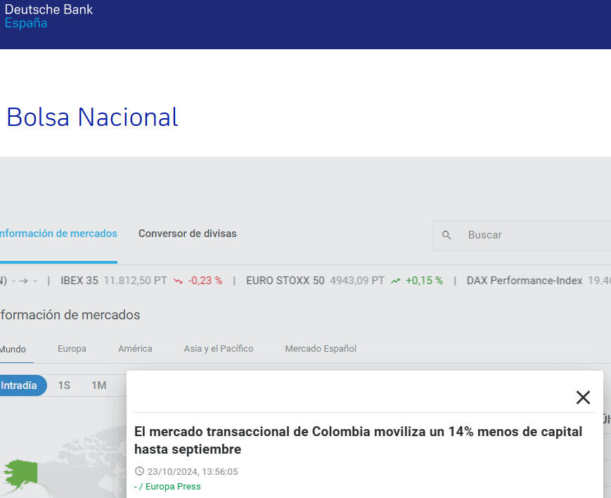 El mercado transaccional de Colombia moviliza un 14% menos de capital hasta septiembre