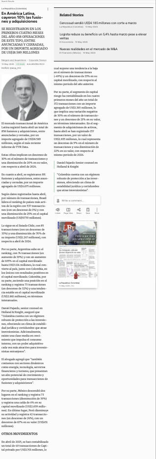 Colombia, por ejemplo, registró 74 transacciones en los cinco primeros meses del año (una disminución de 25%) y una caída en el capital movilizado (US$2.586 millones).