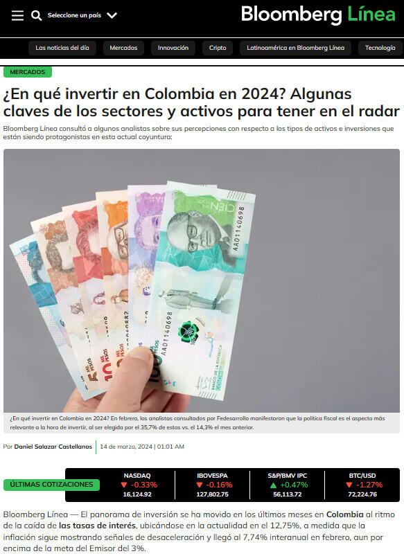 ¿En qué invertir en Colombia en 2024? Algunas claves de los sectores y activos para tener en el radar