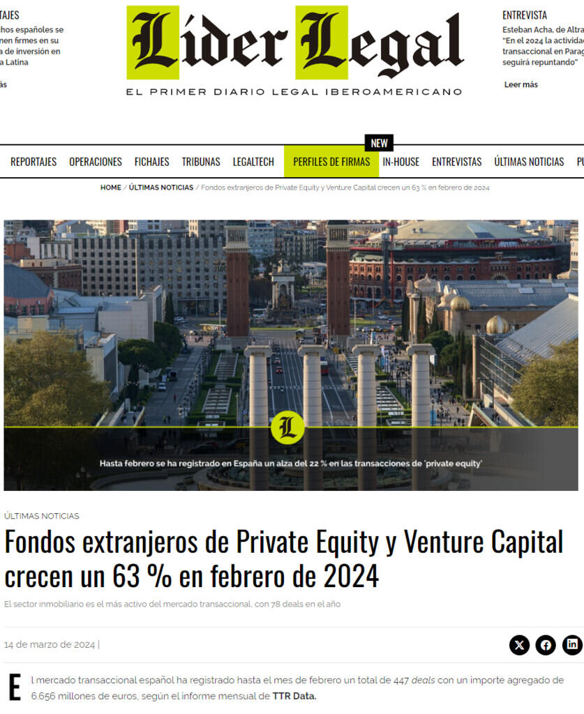 Fondos extranjeros de Private Equity y Venture Capital crecen un 63 % en febrero de 2024