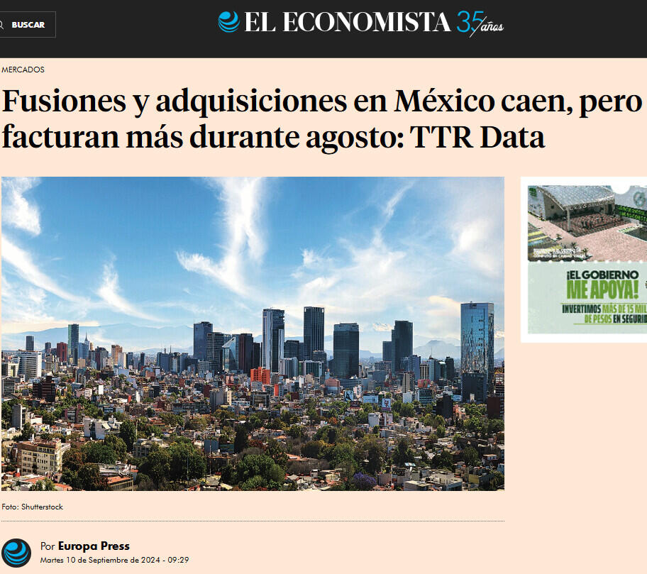 Fusiones y adquisiciones en México caen, pero facturan más durante agosto: TTR Data