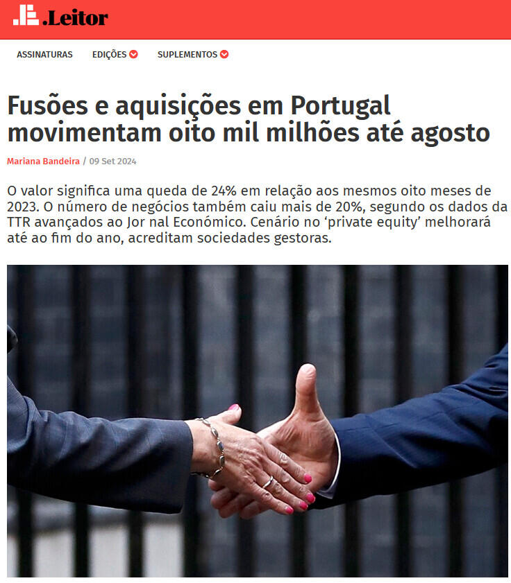 O valor significa uma queda de 24% em relação aos mesmos oito meses de 2023. O número de negócios também caiu mais de 20%, segundo os dados da TTR avançados ao Jor nal Económico. Cenário no ‘private equity’ melhorará até ao fim do ano, acreditam sociedades gestoras.
