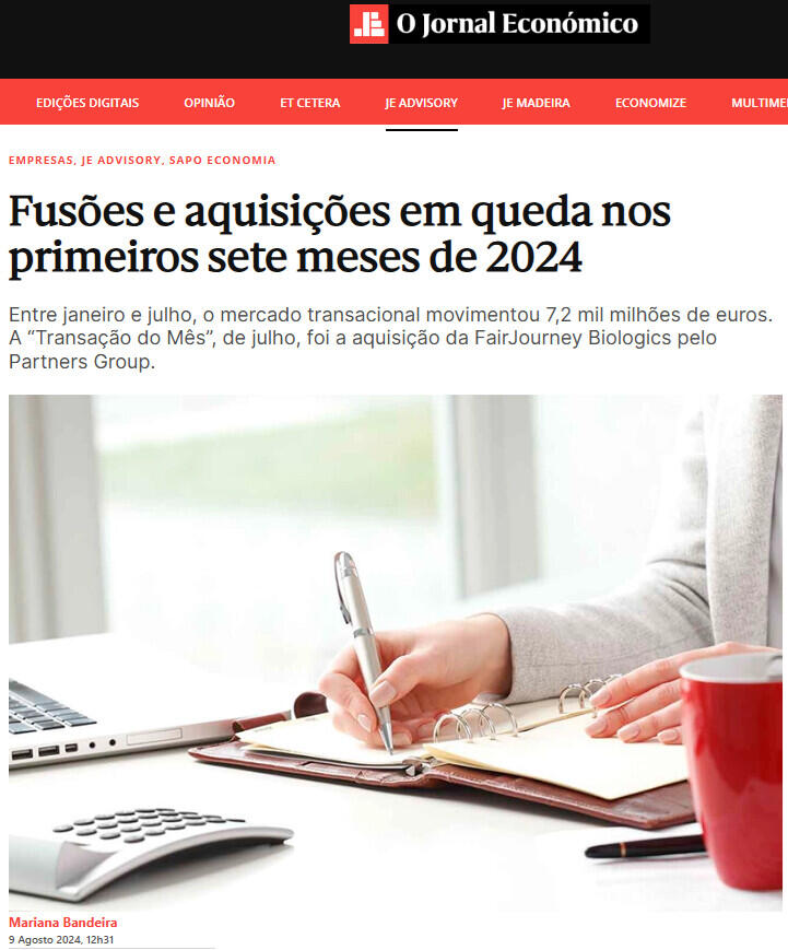 Entre janeiro e julho, o mercado transacional movimentou 7,2 mil milhões de euros. A “Transação do Mês”, de julho, foi a aquisição da FairJourney Biologics pelo Partners Group.