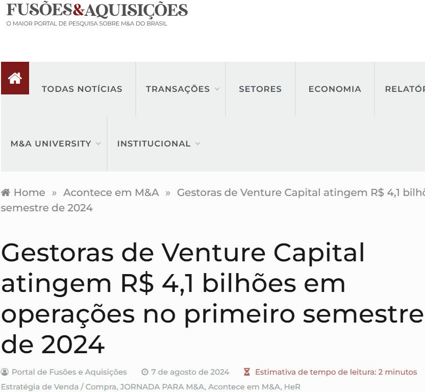 Gestoras de Venture Capital atingem R$ 4,1 bilhões em operações no primeiro semestre de 2024