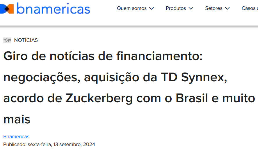 Giro de notícias de financiamento: negociações, aquisição da TD Synnex, acordo de Zuckerberg com o Brasil e muito mais