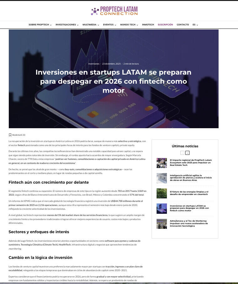 Durante los últimos tres años, las compañías tecnofinancieras han demostrado una notable capacidad para atraer capital, y se espera que sigan siendo polos naturales de inversión. Sin embargo, el rumbo apunta hacia acuerdos de mayor envergadura. Según Marcela Chacón, vocera de TTR Data, estas empresas “podrían ver fusiones, consolidaciones o captación de capital privado en América Latina en general, en un contexto de madurez creciente del ecosistema”.