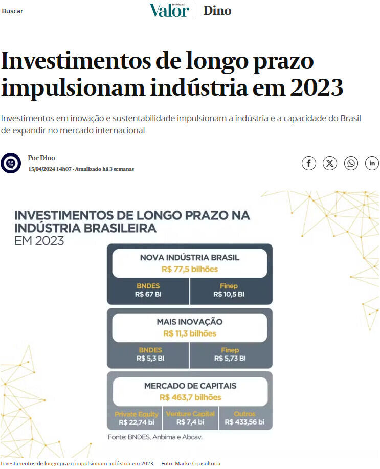 Startups e empresas de pequeno e médio porte também foram alvo de investimentos nos últimos meses. Os fundos de Private Equity e Venture Capital somaram R$30,1 bilhões em 2023.