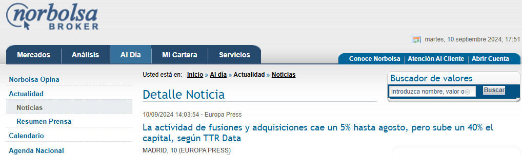El mercado transaccional español ha registrado hasta agosto un total de 1.986 acuerdos de fusiones y adquisiciones, lo que supone un descenso del 5% respecto al mismo periodo de 2023, aunque, por contra, el importe de estas adquisiciones en lo que va de año ha sido de 69.700 millones de euros, un 40% más del capital movilizado en los ocho primeros meses de 2023, según el informe divulgado este martes por TTR Data.