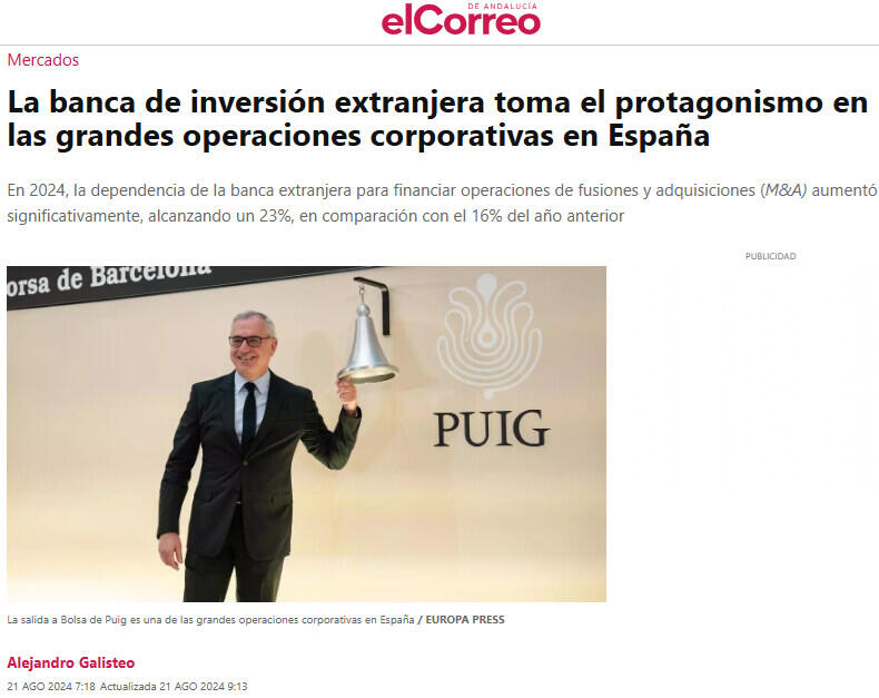 Por su parte, la plataforma de información sobre mercados Dealogic señala que en el segundo trimestre de 2024, los ingresos de los bancos de inversión en el mercado bursátil español se dispararon, alcanzando los 61 millones de euros, un incremento del 1.120% respecto al mismo período de 2023. Este aumento se debe principalmente a las operaciones de empresas como Puig, Cellnex y Sacyr, con Puig liderando la recaudación tras su salida a bolsa en mayo. La banca de inversión que más disparó sus beneficios obtuvieron llevaba DNI extranjero, con JPMorgan y Goldman Sachs como los principales beneficiados, llevándose la mayoría de las comisiones generadas en este periodo.