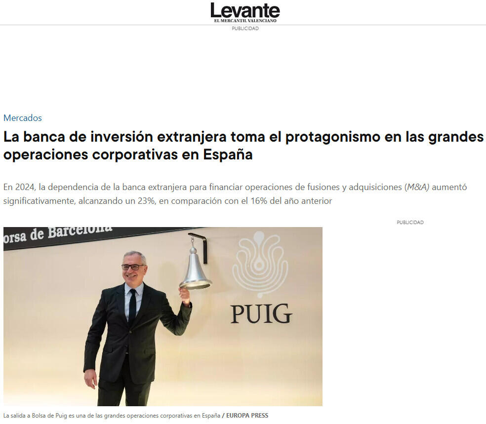Por su parte, la plataforma de información sobre mercados Dealogic señala que en el segundo trimestre de 2024, los ingresos de los bancos de inversión en el mercado bursátil español se dispararon, alcanzando los 61 millones de euros, un incremento del 1.120% respecto al mismo período de 2023. Este aumento se debe principalmente a las operaciones de empresas como Puig, Cellnex y Sacyr, con Puig liderando la recaudación tras su salida a bolsa en mayo. La banca de inversión que más disparó sus beneficios obtuvieron llevaba DNI extranjero, con JPMorgan y Goldman Sachs como los principales beneficiados, llevándose la mayoría de las comisiones generadas en este periodo.