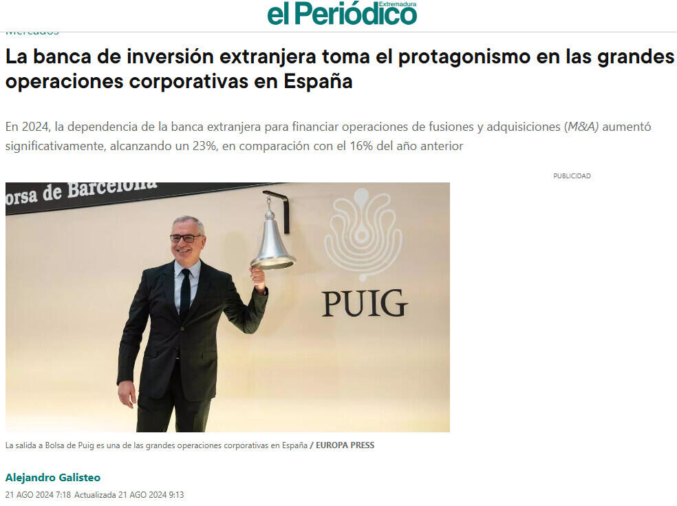 Por su parte, la plataforma de información sobre mercados Dealogic señala que en el segundo trimestre de 2024, los ingresos de los bancos de inversión en el mercado bursátil español se dispararon, alcanzando los 61 millones de euros, un incremento del 1.120% respecto al mismo período de 2023. Este aumento se debe principalmente a las operaciones de empresas como Puig, Cellnex y Sacyr, con Puig liderando la recaudación tras su salida a bolsa en mayo. La banca de inversión que más disparó sus beneficios obtuvieron llevaba DNI extranjero, con JPMorgan y Goldman Sachs como los principales beneficiados, llevándose la mayoría de las comisiones generadas en este periodo.