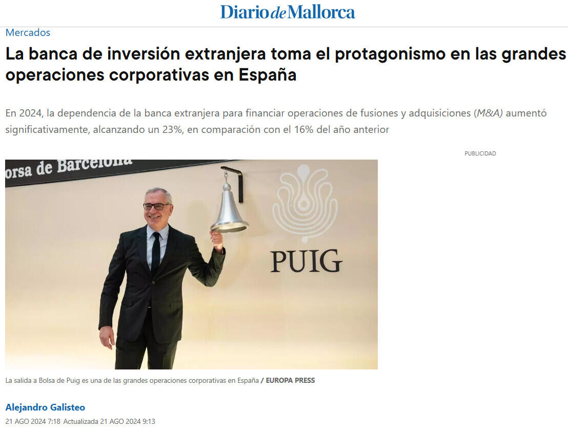 Por su parte, la plataforma de información sobre mercados Dealogic señala que en el segundo trimestre de 2024, los ingresos de los bancos de inversión en el mercado bursátil español se dispararon, alcanzando los 61 millones de euros, un incremento del 1.120% respecto al mismo período de 2023. Este aumento se debe principalmente a las operaciones de empresas como Puig, Cellnex y Sacyr, con Puig liderando la recaudación tras su salida a bolsa en mayo. La banca de inversión que más disparó sus beneficios obtuvieron llevaba DNI extranjero, con JPMorgan y Goldman Sachs como los principales beneficiados, llevándose la mayoría de las comisiones generadas en este periodo.