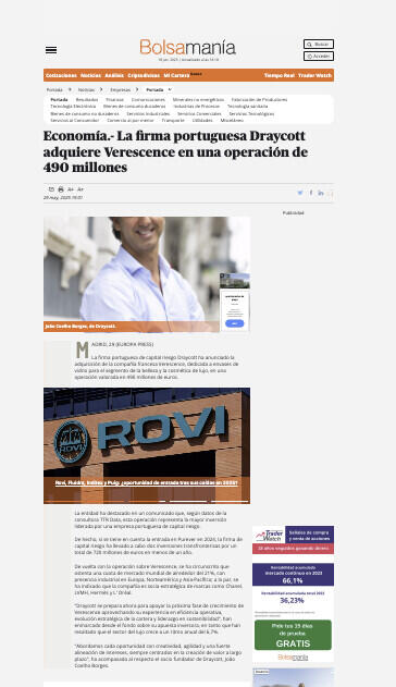 La firma portuguesa Draycott adquiere Verescence en una operación de 490 millones