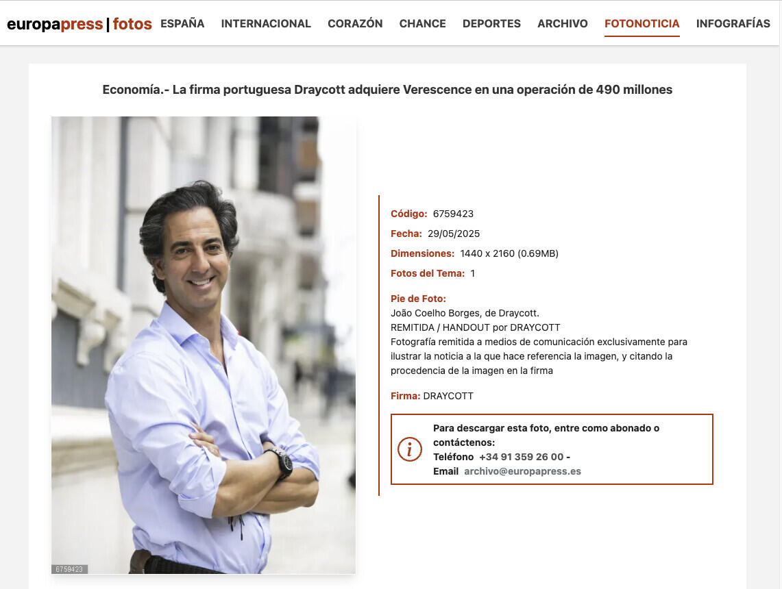 La firma portuguesa Draycott adquiere Verescence en una operación de 490 millones