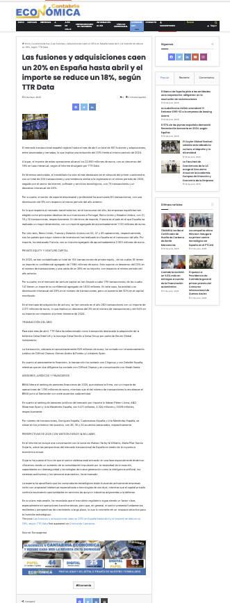 En el informe se incluye una conversación con la socia de Watson Farley & Williams, Maria Pilar García Guijarro, sobre las perspectivas del mercado transaccional de España en medio de la coyuntura económica actual.