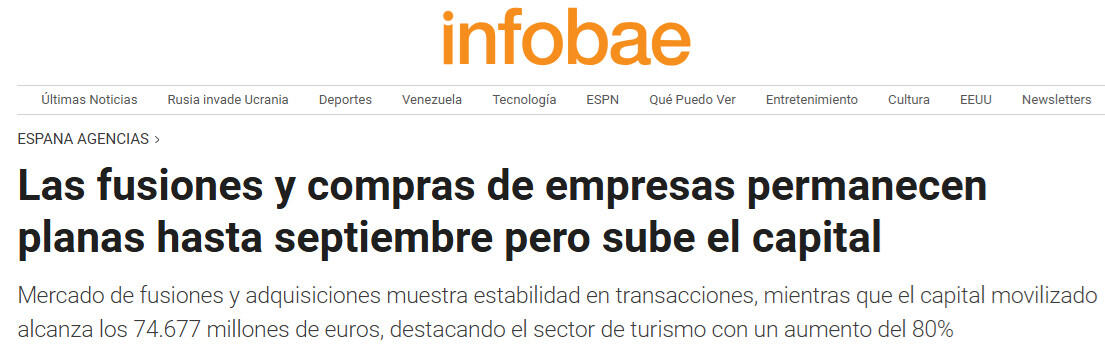 Mercado de fusiones y adquisiciones muestra estabilidad en transacciones, mientras que el capital movilizado alcanza los 74.677 millones de euros, destacando el sector de turismo con un aumento del 80%