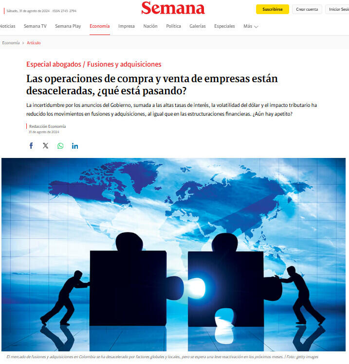 Para Lina Uribe, de Gómez Pinzón, en el último año se ha observado algún grado de reactivación en la dinámica de las fusiones y adquisiciones en el país, luego de una disminución significativa entre los años 2022 y 2023. “Sin embargo, en términos generales, la dinámica de fusiones y adquisiciones sigue siendo baja, en línea con el bajo crecimiento económico del país”.
