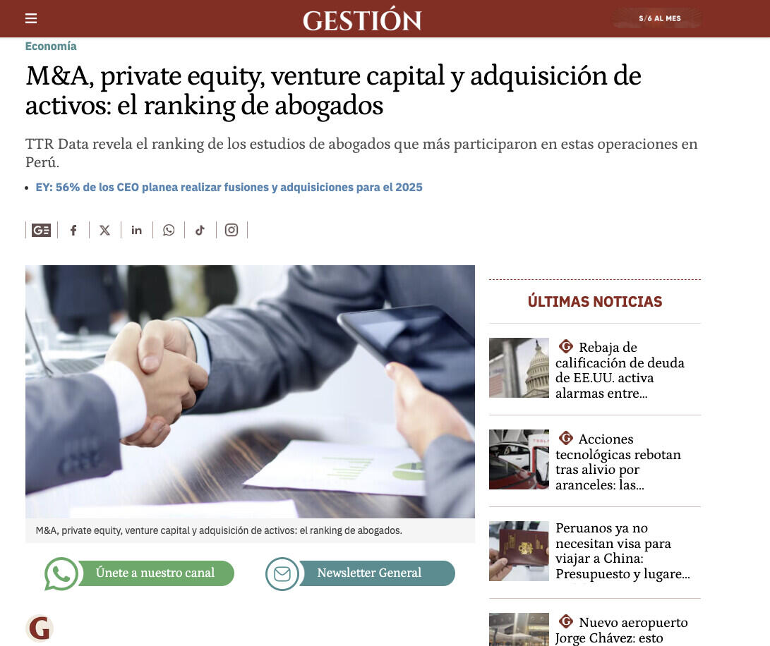 TTR Data revela el ranking de los estudios de abogados que más participaron en estas operaciones en Perú.