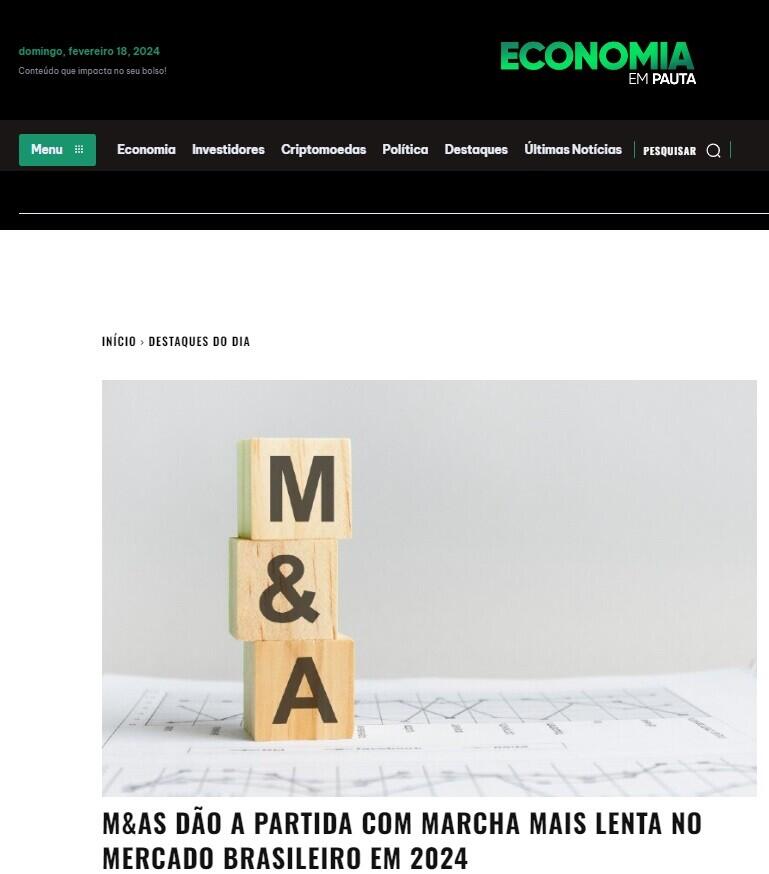 Depois de encerrar o mês dezembro com um viés de alta, ao registrar 194 transações, o segundo maior volume de 2023, a trilha dos M&As está sendo marcada por uma desaceleração neste início de 2024 no mercado brasileiro.