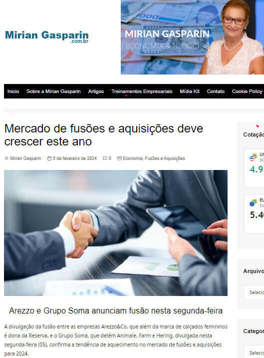 A divulgação da fusão entre as empresas Arezzo&Co, que além da marca de calçados femininos é dona da Reserva, e o Grupo Soma, que detém Animale, Farm e Hering, divulgada nesta segunda-feira (05), confirma a tendência de aquecimento no mercado de fusões e aquisições para 2024.