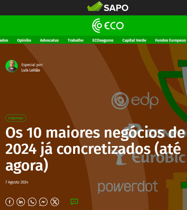 Estes são apenas dois dos dez maiores negócios concretizados este ano até agora, de acordo com dados recolhidos pelo ECO junto da TTR Data e da Dealogic. Conheça alguns detalhes destas operações, notando que fica de fora desta listagem o maior negócio anunciado este ano, protagonizado pela Galp Energia e pela Abu Dhabi National Oil Company, envolvendo a alienação de 10% dos ativos upstream da petrolífera nacional em Moçambique por 650 milhões de dólares, por a operação ainda não ter sido concretizada; assim como o recente anúncio da compra da Nowo pelos romenos da Digi, por 150 milhões de euros, por a operação ainda ter de passar no crivo da Autoridade da Concorrência.