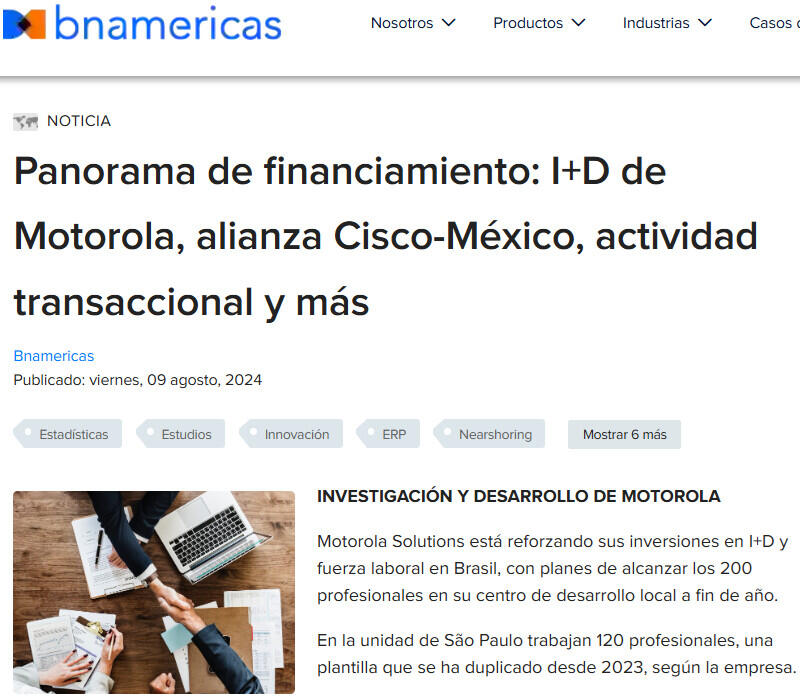 Panorama de financiamiento: I+D de Motorola, alianza Cisco-México, actividad transaccional y más