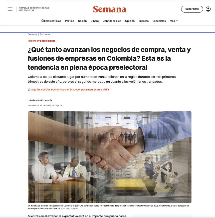 ¿Qué tanto avanzan los negocios de compra, venta y fusiones de empresas en Colombia? Esta es la tendencia en plena época preelectoral