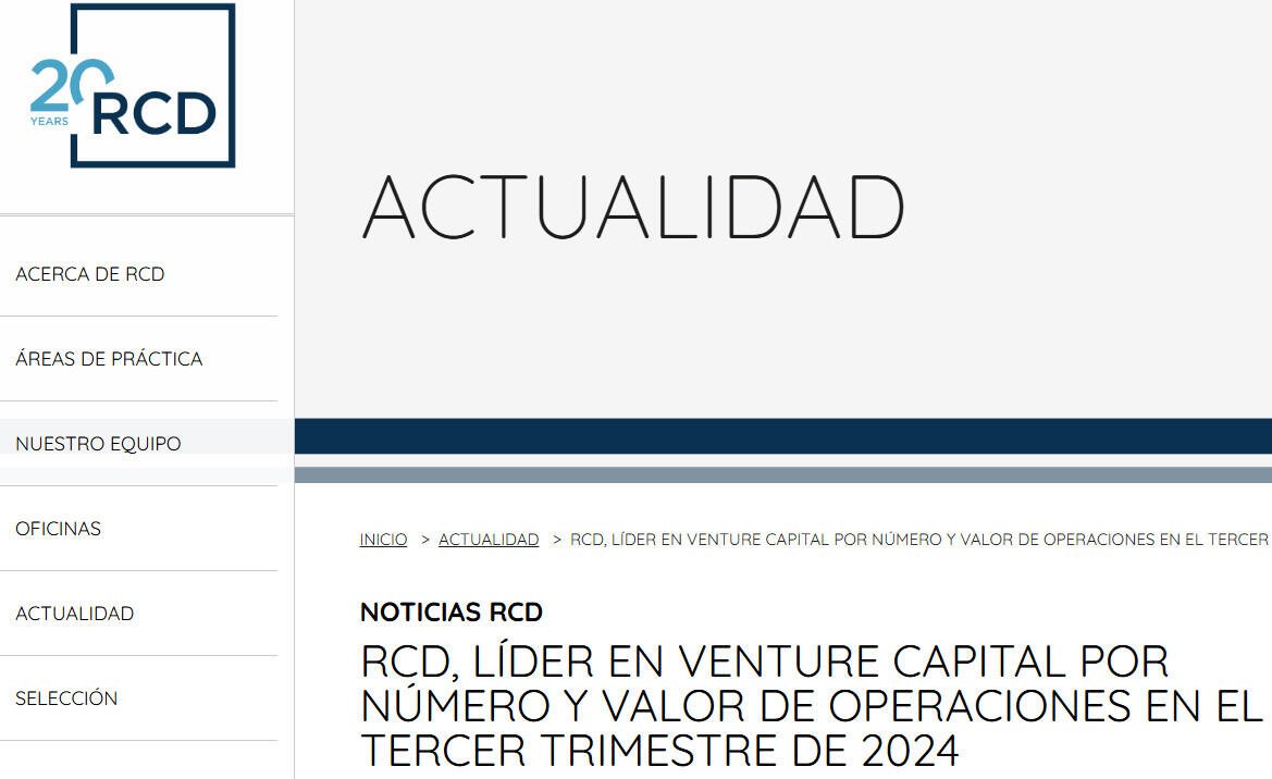 RCD, líder en Venture Capital por número y valor de operaciones en el tercer trimestre de 2024