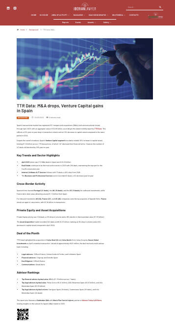- April 2025 alone saw 212 M&A deals in Spain worth €2.03 billion.
