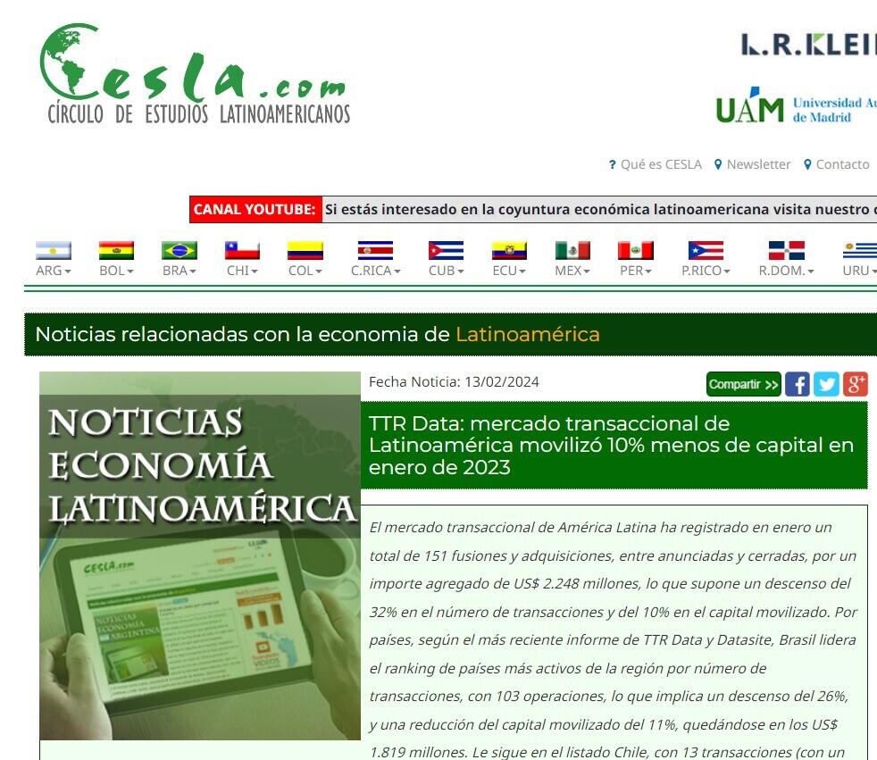 TTR Data: mercado transaccional de Latinoamérica movilizó 10% menos de capital en enero de 2023