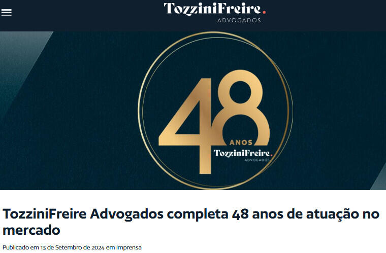 TozziniFreire Advogados comemora em setembro 48 anos de excelência e destaque, sendo um dos líderes em serviços jurídicos na América Latina. Com sua atuação full-service em todo o território nacional e abrangendo todas as áreas do Direito Empresarial, possui um histórico relevante na assistência a empresas nacionais e internacionais de diversos setores.