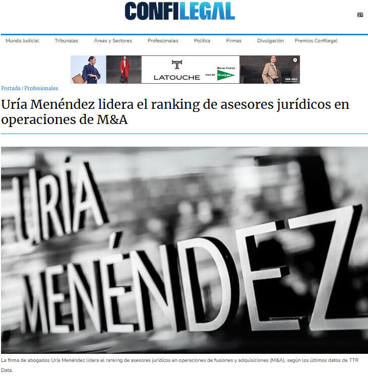 Uría Menéndez lidera el ranking de asesores jurídicos en operaciones de M&A
